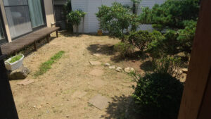 7月25日施工 お庭の草刈りと草むしり ススキの抜根。